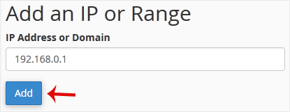 3. Em Add an IP or Range , você deve inserir o endereço IP que deseja bloquear.