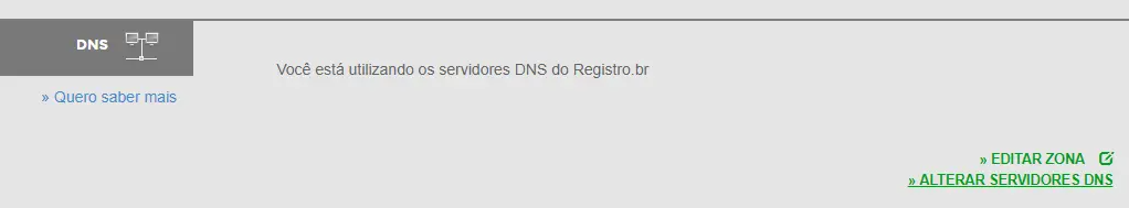 Ao clicar no domínio será aberto o gerenciamento do mesmo, na seção DNS clique em ALTERAR SERVIDORES DNS: