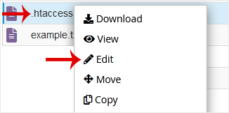 no menu de contexto. 6. Em uma nova janela, clique em Editar . 7. Faça alterações em seu arquivo dot htaccess e clique em Salvar alterações .
