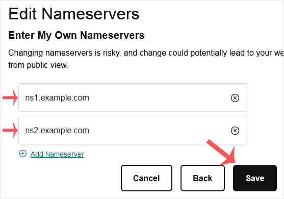 Você pode encontrar nossos servidores de nomes em seu e-mail de boas-vindas de hospedagem. Você precisa atualizar seus servidores de nomes de domínio para nossos servidores de nomes.