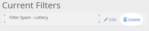 3. Em Filtros atuais são exibidos todos os filtros existentes. Clique em Excluir ao lado do apropriado. 4. Agora clique em Excluir filtro para remover seu filtro.