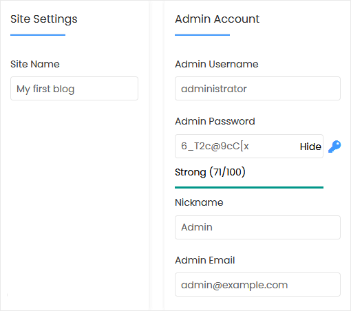 - Site Name: Enter the name of your website, such as my first website.