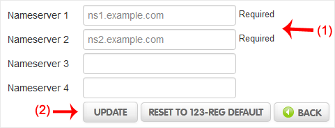 5. Digite seus servidores de nomes nos campos de texto e clique em Atualizar .