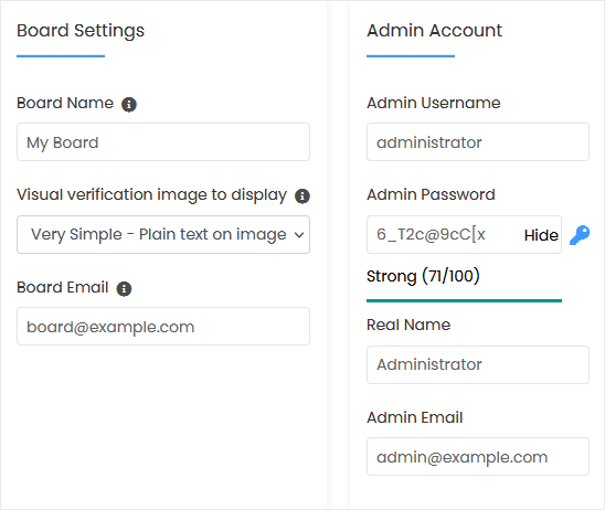 - Admin Username: Your new phpBB username (for security reasons, do not use the administrator or the admin username).