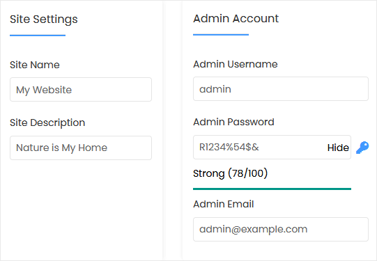- Admin Email: Your email address. It is helpful for admin account password reset, notification, etc.