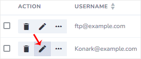 3 . Clique no ícone Lápis ao lado da conta FTP.
