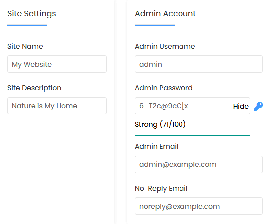 - Admin Password: Use a strong password.