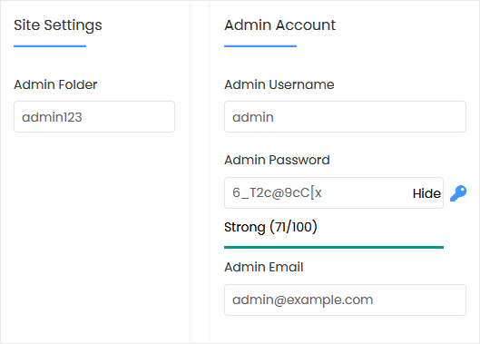 • Admin Folder: Enter the name of your admin folder, such as admin123.