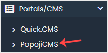 4. No lado esquerdo, localize a categoria Portal/CMS . Clique nele e depois no link PopojiCMS que aparece. 5. Clique em Instalar . 6. Preencha os campos necessários nos campos de configuração de software :