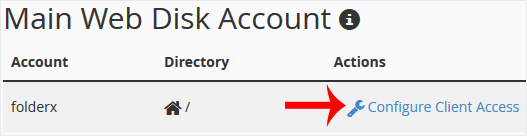 3. Em Main Web Disk Account , clique em Configure Client Access.