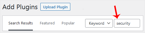3. Use o filtro Pesquisar para encontrar os plug-ins. Digite Segurança para encontrar plugins relacionados a ele.