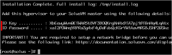 Passo 3: Depois de concluído, ele mostrará as chaves do Slave e mais instruções para o seu tipo de virtualização. Agora você pode usar essas chaves para adicionar um nó ao seu painel SolusVM Master. Você precisará ter uma licença SolusVM Slave para cada nó.