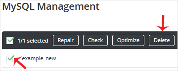 Você pode remover seu banco de dados do painel de controle do DirectAdmin. No entanto, recomendamos que você crie um backup dele antes de removê-lo.